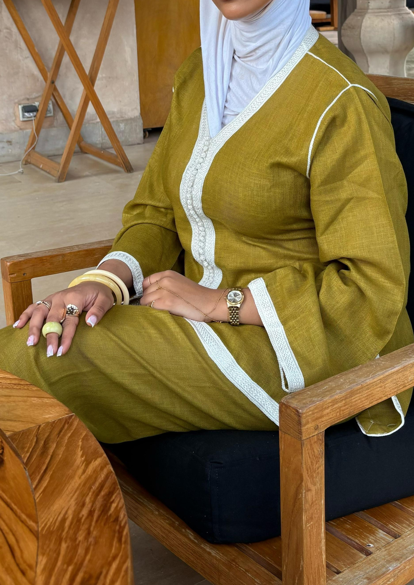 Ensemble marocain imaginé et créé par mes soins, alliant tradition et modernité. Confectionné dans un tissu type lin, il offre une coupe fluide et élégante. Taille unique, la tunique est ajustable à la taille ou aux hanches selon l’envie, pour s’adapter à toutes les silhouettes avec confort et style